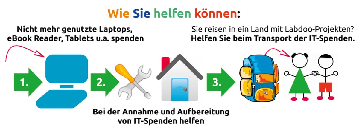 Labdoo ist eine gemeinnützige Organisation, die über ein Netz an Paten funktionstüchtige IT-Geräte an Dritte im In- und Ausland weitergibt und somit den Zugang zu Bildung und Informationstechnologie unterstützt.