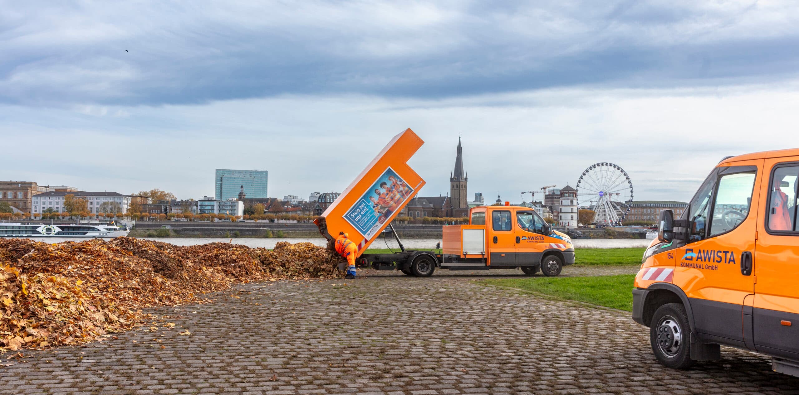 Der kontinuierliche Laubfall im ganzen Stadtgebiet bedeutet auch, dass die Mitarbeiterinnen und Mitarbeiter der AWISTA Kommunal nicht zeitgleich an allen Stellen sein können. Es kann dadurch auch mal etwas dauern, bis die Reinigungstrupps den nächsten Schwung Blätter aufnehmen.